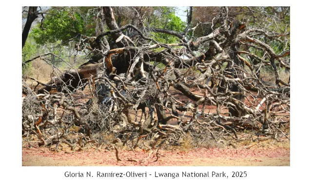 Lo que supe por informes del cambio climático al regresar del viaje, fue que la ola de calor de la última temporada seca (2025) fue «anómalamente alta para esta época del año». El sol se excedió en funciones con mediciones diarias por encima de los 35 °C. En África, el sol sigue siendo el destino, quien impone las normas y el que hace posible que se revele la belleza más autentica y salvaje.
