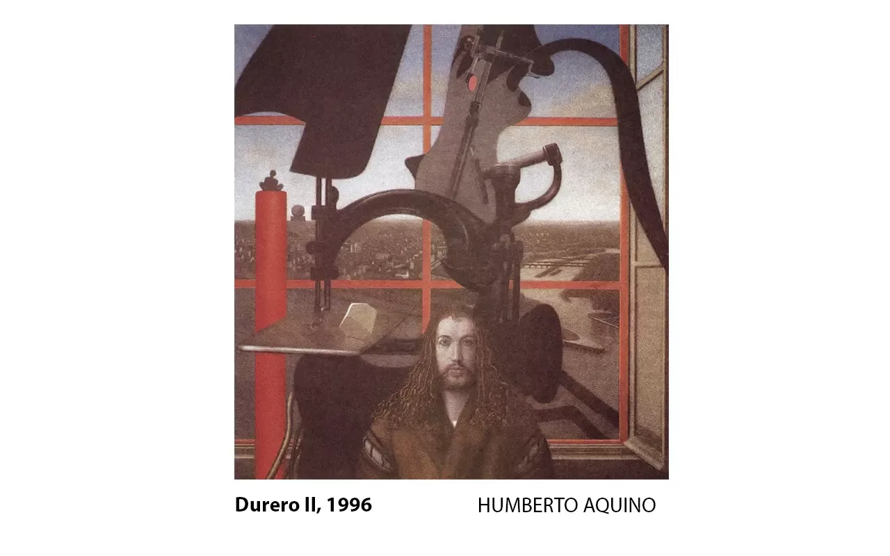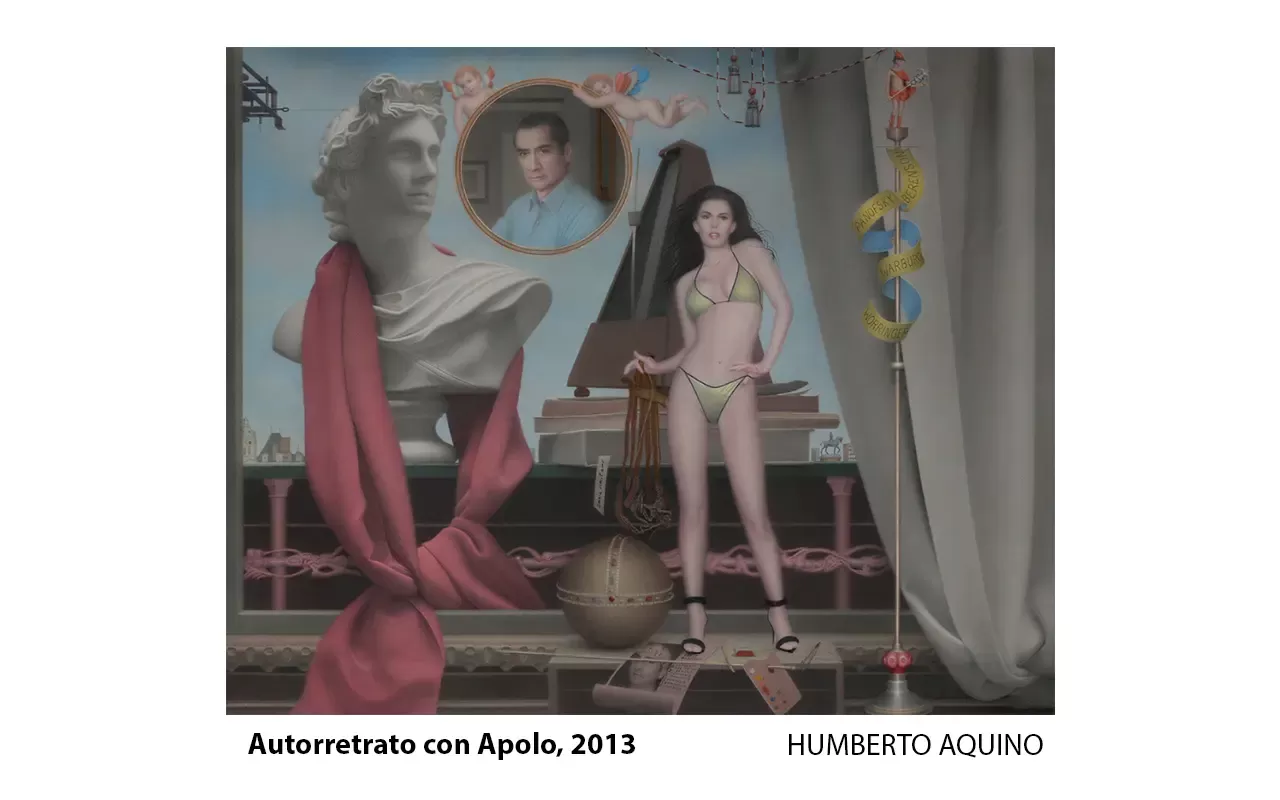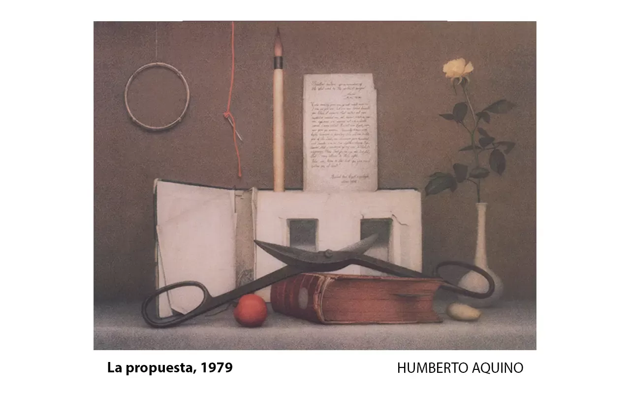 En 1972, Humberto Aquino recibió una beca del British Council para estudiar en el Cardiff College of Art, en Gales, Reino Unido. Permaneció dos años en Inglaterra, trabajando y exhibiendo su obra en exposiciones individuales y colectivas. Su estadía en Inglaterra le permitió viajar periódicamente al continente europeo y visitar los museos más importantes, así como estudiar de primera mano las obras de sus admirados maestros Leonardo, Durero, Holbein, Ingres y del contemporáneo austriaco del realismo mágico Ernst Fuchs. En 1977 obtuvo una beca Fulbright para estudiar en el Pratt Institute de Brooklyn.